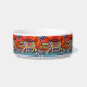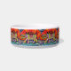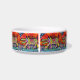This is a heavy, durable bowl decorated with Tibbies of many colors, the perfect size for hungry/thirsty Tibs. The design is interesting and printing clear.