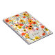 Set against a clean, crisp white background, this design bursts with color: bold orange and golden-yellow blossoms take center stage, echoing the warmth of poppies and sunflowers. Delicate pinks, gentle purples, and soft cream flowers add layers of charm, while lush greens and subtle blue-greys flow like gentle vines through this floral tapestry.