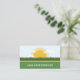 A business card featuring an illustration of a setting sun over grass with some clouds for lawn care and professional gardening or people working in the landscaping field such as landscaper, mowing and maintaining the lawn, maintaining green spaces, etc.