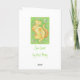 A happy, yellow tabby cat rolling around on the grass in the sunshine. Greetings card with a yellow, orange, green, white and blue customizable design for you to personalize with your own text, pictures and ideas. An original colored pencil drawing by Jess Perry.