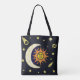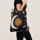 This useful tote bag shows the sun and the moon, yellow stars, comets, asteroids and galaxies, against a midnight blue background. Perfect to take on shopping trips and a great colourful accessory or gift.