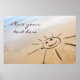 sun drawing on the sand beach. Perfect for greeting cards. Fun, positive and happiness concept.