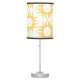 The lamp looks exactly like the picture, bright and colorful. The lamp shade is plastic not what I expected, however I love it! The printing is clear and the name can easily be read.