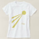 T-Shirt with sun rays. Three emerging rays are for body, mind and spirit. Text "Sunny" on the front side can be personalized.