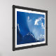 Dramatic sun rays break through soft clouds, creating a powerful yet calming sky scene. The minimalist composition and rich blue tones make this artwork perfect for modern interiors, meditation spaces, or serene environments.