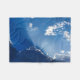 Dramatic sun rays break through soft clouds, creating a powerful yet calming sky scene. The minimalist composition and rich blue tones make this artwork perfect for modern interiors, meditation spaces, or serene environments.