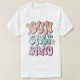 A pretty groovy style colorful typography saying for the summer vacation, that reads: Sun, salt, sand.