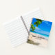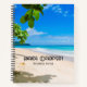 A personalized spiral notebook with a lovely photograph. A white sandy beach with azure blue water. Relaxing image with a sunny sky and gentle foamy surf with some cute tropical leaves framing the image.