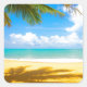 sun sea sand palm tree paradise beach square sticker