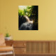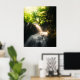 Sun shining on a magical waterfall poster