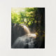 Landscape photograph of a magical scenery with sun shining on a waterfall creating a stunning lighting.