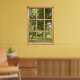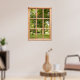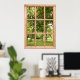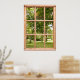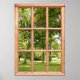 Sunshine and Shade among the Trees in the Park This poster that looks like a window shows a view of a soothing green scene. The leafy trees offer shade from the summer sunshine and dapple the grass with sunlight and shade. A restful view to look out on, framed by a wooden window.