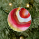 Lightweight, smooth, pure white ornament with nice sheen. Perfect size to be seen from across the room ... and to attract closer inspection! Price was great for ordering enough for the whole family! Clear, bold black design just as requested. Matches the order exactly. Just so nice!