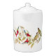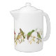 Gorgeous collage of vintage botanical fine art by Gould of exotic tropical Asian Fiery Tailed Sunbird and Catbird Birds and their habitats is on this Teapot.