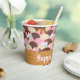 Sundae Ice Cream Birthday Paper Cups - Personalize these birthday paper cups have a sprinkles and sundae ice cream cone design. Super cute Neapolitan ice cream sundae scoops in three colors of strawberry, vanilla and chocolate ice cream with matching sprinkles, sauces, whip cream all on a waffle cone at the bottom.