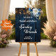 An elegant after - Wedding design with elegant calligraphy completed by wonderful blue wood, garden string lights and white blue floral with gold glitter. You can personalize this board with your details.