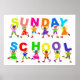 Cute cartoon illustration of a group of little boys and girls holding up letters that spell out the words SUNDAY SCHOOL. The background area is totally transparent so that you can easily customize and choose any colour you like. Image available on various gifts and products.