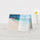 Thank you card with scripture for a Sunday School teacher. A tropical blue ocean and warm beach sand is the image on the front of horizontal, folded cards. A transparent white panel holds this scripture from Proverbs: "Train a child in the way he should go and when he is old he will not turn from it.” Another beach sand image covers the inside where a text template can be used to include a personal message of thanks with a signature. This card comes in three sizes and has an instant download option.