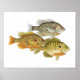 Art Poster showcasing 3 watercolor studies of different species of sunfish- Redear, Pumpkinseed and bluegill. From originals by nature artist, Thom Glace