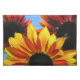 This placemat will bring brightness and cheer to your dining! Three brilliantly colored sunflowers are illuminated by the sunlight streaming through the petals. The flowers display a gorgeous palette of gold, yellow, orange, red and brown. The blue sky completes this composition of color and form.