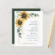 Create a modern Sunflower Floral Budget Wedding invitation card with this cute template featuring beautiful rustic floral bouquet, geometric gold effect frame, qr code, with script and modern simple typography.