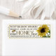Pale ivory label with a dotted border and vintage sunflower illustration with bee. Honey is written in large gold embossed text.