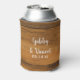 Keep your canned beverages cool at your informal yet elegant farm or ranch style bridal shower or marriage reception with the charming Sunflower and Horseshoe Western Wedding Can Cooler. Create one of a kind party favors when you personalize it with the name of the newlywed couple and date. This casual and classy custom equine theme wedding can cooler features a quaint floral photograph of a yellow sunflower blossom, rusty horseshoe and white bridal veil with a rustic brown barn wood background.