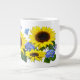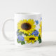 Beautiful sunflowers with little blue butterflies and blue hydrangea blooms, so cheerful and uplifting, make a mug that will brighten the dullest day!