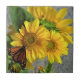 Bright yellow sunflowers and a monarch butterfly make a lovely image for this decorative ceramic tile
