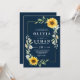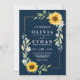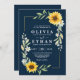 Sunflower and Navy Blue Geometric Rustic Wedding Invitation