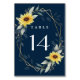 Sunflower and Navy Blue Geometric Rustic Wedding Table Number
