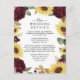 Sunflower and Roses Burgundy Red Rustic Wedding Enclosure Card