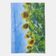 My original photograph of sunflowers in a field with a blue sky is featured on this pretty and handy kitchen towel. My image was processed with an impressionist watercolor painterly style for an artsy flair. These nice towels are a good size of 16 inches by 24 inches and also machine washable. The back side has a white tone and cannot be designed per Zazzle specifications. A nice housewarming gift or kitchen gift for a flower lover, vacationer or chef.