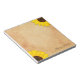 Personalized notepad with your name/business name and a custom line of text on a printed vintage parchment antique aged paper texture with yellow sunflowers.