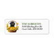 The left side of these return address labels feature an image of a beautiful black Labradoodle puppy dog sitting in a wicker basket full of bright gold sunflowers. Your custom text is in green and black at the right. Colorful and cute!