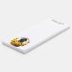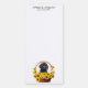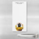 This refrigerator magnetic notepad features an image of a black Labradoodle puppy dog sitting in a wicker basket full of bright gold sunflowers. The image is printed at the center bottom of the notepad, with your name and other text in black at the top.