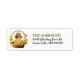 The left side of these return address labels feature an image of an adorable buff colored Cocker Spaniel puppy dog sitting in a wicker basket full of bright gold sunflowers. Your custom text is in green and black at the right. Colorful and cute!