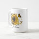 This is a bright, cheerful white ceramic coffee mug featuring a warm, sunflower-themed design. The focal point is a large, richly detailed sunflower with golden-yellow petals and a dark textured center, surrounded by soft splashes of golden paint and delicate botanical accents. Scattered around the flower are several butterflies in coordinating yellow and brown tones, adding a light, whimsical feel. Overlaying the design is an uplifting handwritten-style message that reads: “When you can’t find the sunshine, be the sunshine.” The word “Sunshine” is emphasized at the bottom in a larger, flowing script, giving the mug a motivational and feel-good vibe. Overall, the mug has a cozy, rustic-meets-modern aesthetic with warm golden hues, making it perfect for a comforting morning coffee or as a thoughtful gift.