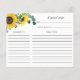Sunflower Bee Bridal Shower Recipe card