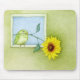 Colored pencil illustration of a cute little bird sitting in a window of a green wall, holding a sunflower in its beak. A lovely gift for mother’s day, thank you, a birthday greeting or for any other special occasion. Also lovely matching cards, postcard, stamp, sticker, magnet, mug, bag, t-shirt, poster.