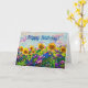 Original photograph of sunflowers in front of a field of sunflowers. Front states "Happy Birthday!" and inside states "Best wishes for a day of sunshine and happiness for a special person – You!" for a nice greeting for kids or adults. Photograph given special effects to highlight a graphic painted style. You can add more text as you like or leave as is!