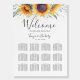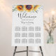 A unique sunflower bloom floral-themed large seating chart foam board tailored specifically to your future wedding.