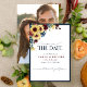Sunflower Blue Burgundy Script Photo Wedding Save The Date