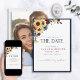 Create the perfect wedding Save the Date card with this pretty, modern design featuring a watercolor sunflower, navy blue and burgundy floral motif, and hand lettered script typography. The back of the card features your favorite engagement photo. Contact designer for matching products. Copyright Elegant Invites, all rights reserved.