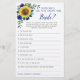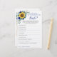 This bridal shower game card is How well do you know the Bride? It has 10 questions for players to answer. The design features watercolor sunflowers and blue roses with foliage. Personalize the back of the cards with the bride's name. Matching products available.