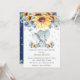 Sunflower Blue Floral Elephant Boy Baby Shower Invitation