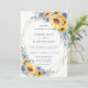 Sunflower Blue Floral Greenery Geometric Wedding Invitation