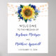 This wedding sign features a watercolor design with sunflowers, blue roses, foliage and string lights. Personalize it with your own text. This product is part of a wedding suite collection featuring matching products. Please visit our store or view the collection page to see the full range.