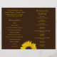 The text and background color on this sunflower wedding program is fully customizable. The program itself is intended to be folded down the middle when you receive it. You can change the text using the personalize option. For more extensive changes to the program, including changing the background color, font, font color, font size, or text placement, choose the "customize it" option. This is a great wedding program for a summer or fall wedding with a sunflower theme. The colors are bright yellow and chocolate brown. Simple, pretty, and cheerful. This program is currently customized for a wedding, but would also work great for an anniversary party program (renewal of vows perhaps) or a church bulletin. All you need to do is change the wording.