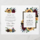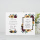Bi fold design -- fold them in half. Design features elegant watercolor roses, peonies, wildflowers and sunflowers in various shades of burgundy red, navy blue and more over a wreath of eucalyptus greenery. Design also features a barn wood frame underneath the wreath. A unique font layout compliments the overall design.